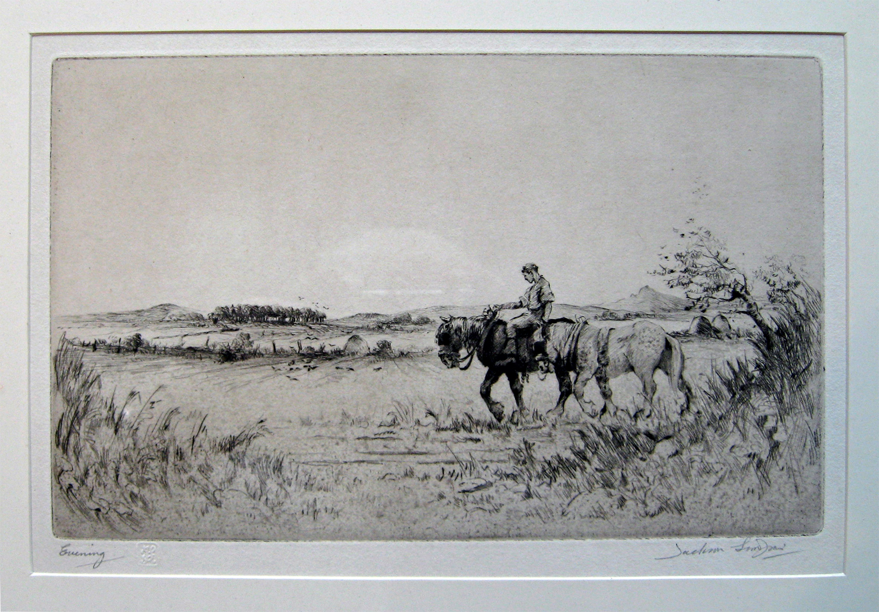 An original framed etching entitled "Evening" by Aberdeen artist Jackson Simpson (1893 - 1963). The enching is signed by the artist and bears hist signature and his embossed guarantee. He exhibited at the Royal Scottish Academy in Edinburgh.