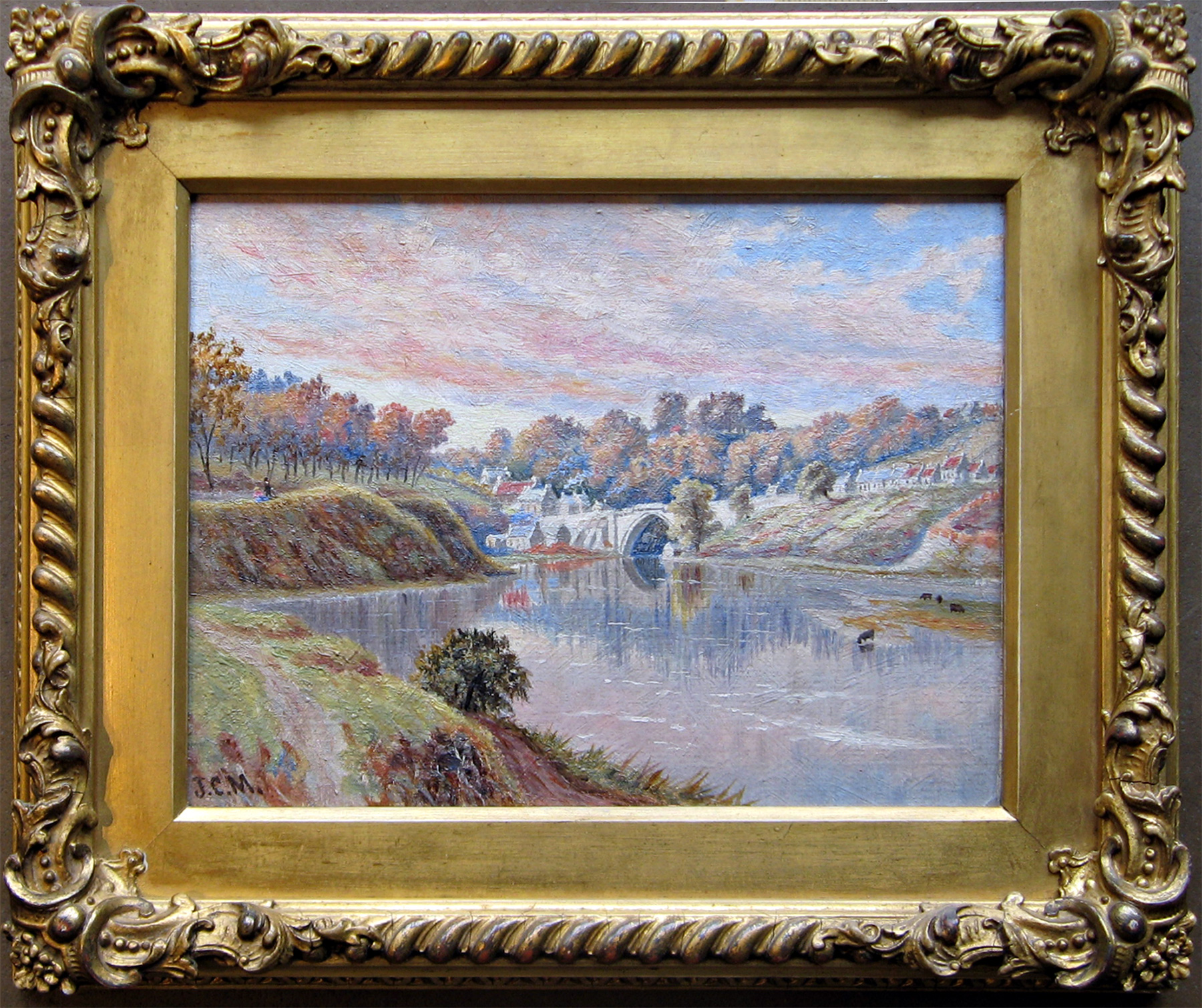 A charming little oil painting in it's original late victorian gilded frame - The subject early 14th century "Brig O' Balgownie" and the surrounding landscape - a landscape that hasn't changed much over the centuries. In the bottom left hand corner are the artist’s initials “J.C.M.” which we have not yet traced but I have decided to sell it and pass on the detective work to the purchaser!